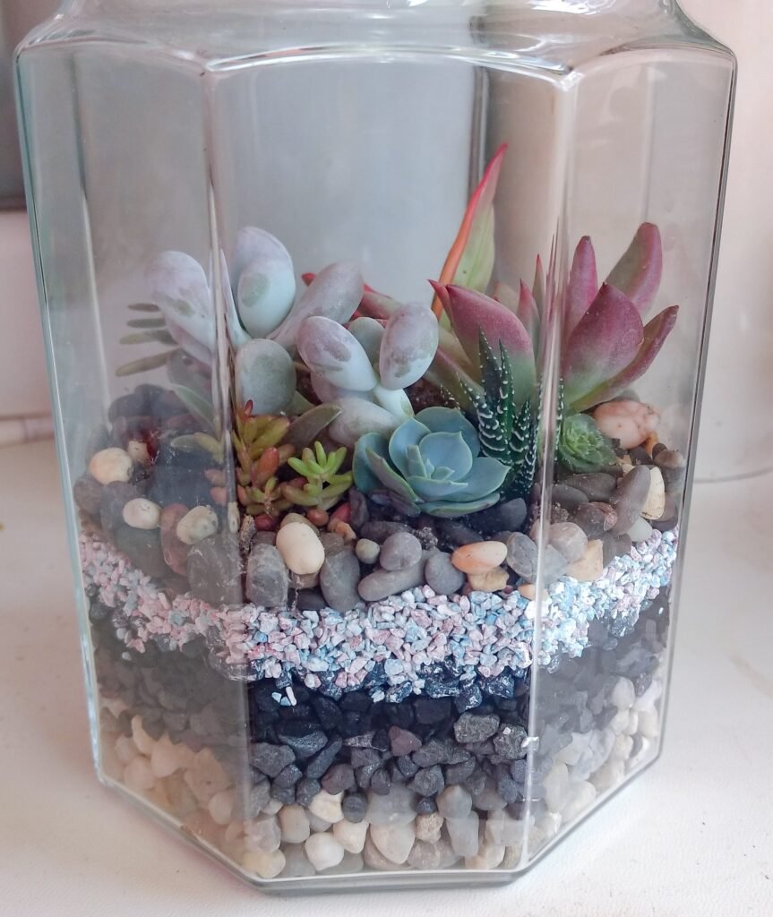 Eine Glas- oder Acrylbox auf Rollen wird zum Mini-Terrarium, das Dir tropisches Klima auf Knopfdruck liefert. Ausgestattet mit Feuchtigkeitsregler, digitaler Temperaturanzeige und automatischer Nebeldüse erhält jede Pflanze das ideale Mikroklima. Ein abnehmbarer Deckel mit Scharnieren ermöglicht unkomplizierten Zugang, während UV-stabile Materialien ein Verblassen der Pflanzen verhindern. Im Boden findest Du eine Tonscherbenschicht, die Staunässe vermeidet und Wurzelfäule vorbeugt. Ein kleiner Akku-betriebener Ventilator sorgt für Luftaustausch, sodass sich Pilzbefall nicht unbemerkt ausbreiten kann. Durch das robuste Gestell auf Lenkrollen lässt sich die Terrarien-Box auch in engen Fluren oder kleinen Arbeitszimmern problemlos manövrieren und bietet exotischen Grünpflanzen ein Zuhause in Deinen eigenen vier Wänden.